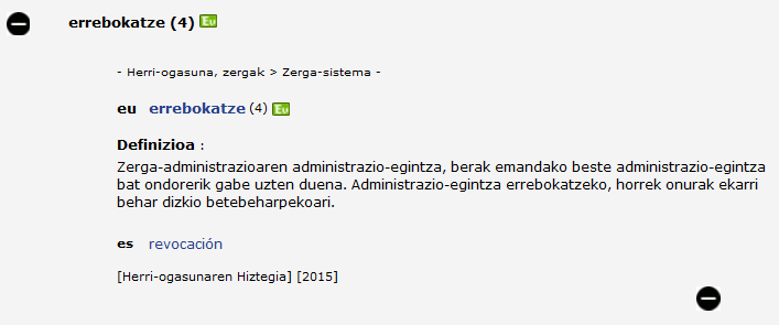 Euskaltermera 2015ean sartu diren hiztegi terminologikoen artean Herri Ogasunaren Hiztegia dago (Norbaitek pentsa lezake txantxa dela baina ez da hala). Sarrera bat Terminologia Batzordeak onartutako forma dela adierazten duen ikurra Euskaltermen hau da: